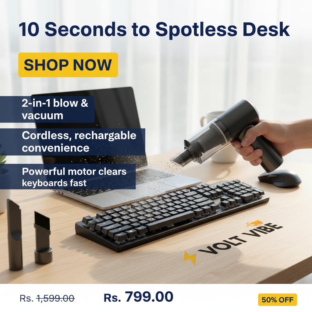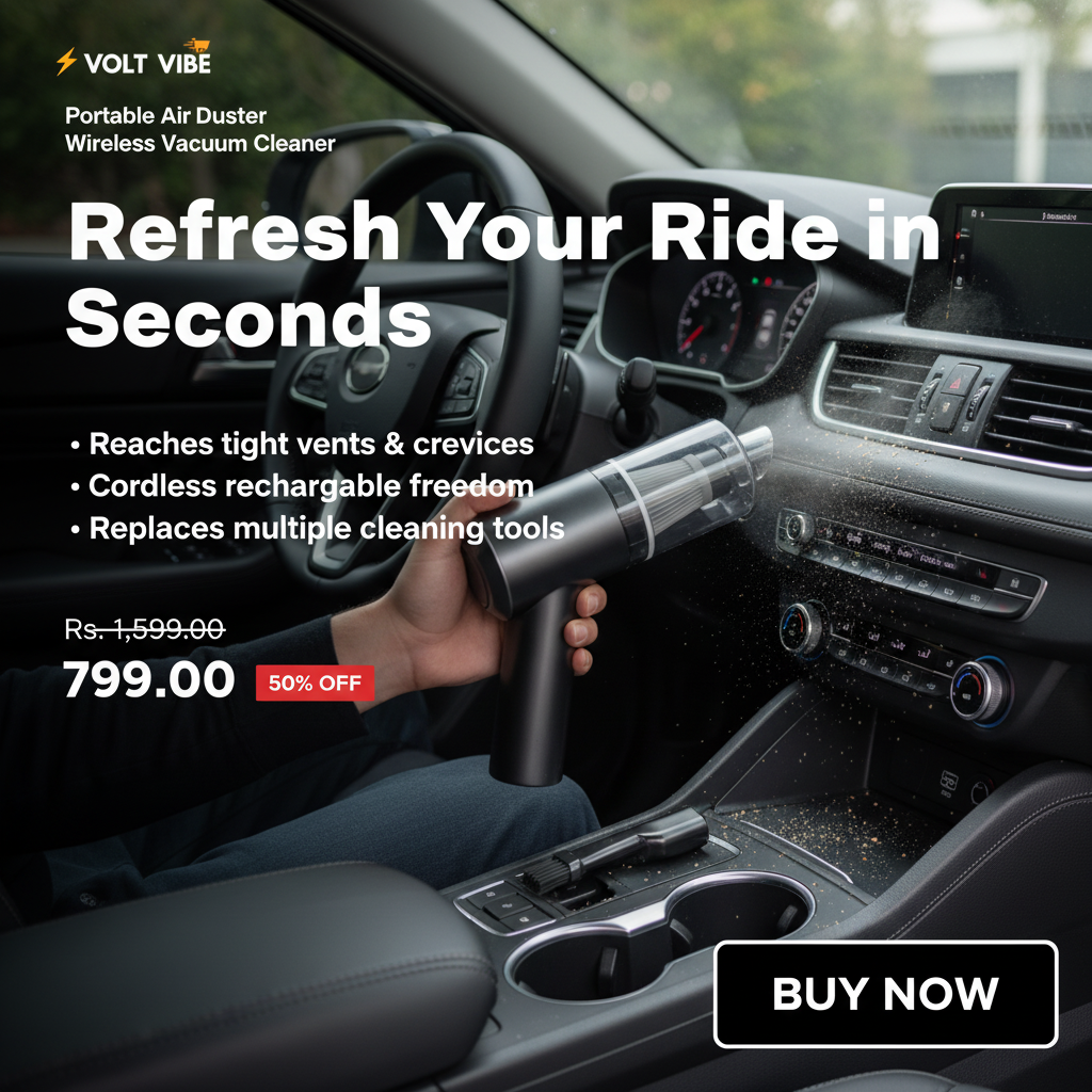 ThisĀ Portable Air Duster and Wireless Vacuum CleanerĀ is designed for people who want powerful cleaning without clutter. It combines two tools into one: a strong air duster to blow away dirt and a compact vacuum to suck it right up.